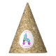 Fun and retro party hat for a roller skating theme birthday party. Illustration of a pink and blue roller skate.