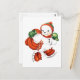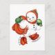 Cute little snowman wearing ice skates, mittens, hat and scarf. Retro card design in bright Christmas Colors