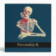 Personalize with your own text. Happy smiling skeleton with his bony hand resting on his chin, done in retro colors.
