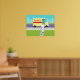 If you have a thirst for a mid century modern design, this Retro Small Town Milkman Poster is for you! The 1960's style, minimalist art design features a dedicated, milkman making his morning rounds. The blond man is wearing milky white pants, shirt and hat with a black bow tie, belt and shoes. This delivery man of calcium and Vitamin D is walking up a front sidewalk, carrying a family's weekly supply of wholesome, fresh milk in glass bottles. The morning newspaper is still on the sidewalk. Don't worry. Only good news is allowed in this town! The sidewalk is surrounded by the type of green lawn only found in small towns and suburbia. There is also a white, picket fence. In the street, we see the milkman's sweet ride! It's a creamy yellow, milk truck with a red stripe on the side and red lettering that says, "DAIRY". On the opposite side of the street, we see an aqua sky and the light blue silhouettes of cedar trees. This kitschy cartoon looks like a scene out of an old television sitcom. Bring on the yellow cake with chocolate frosting--the official cake of all television housewives and their fortunate families! Building strong bones never tasted so good!