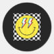 Retro Smile Face Checkered Pattern Preppy Happy Fa Classic Round Sticker