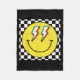 Retro Smile Face Checkered Pattern Preppy Happy Fa Fleece Blanket
