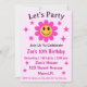 Retro Smiling Pink Flower Checkered Girl Birthday Invitation