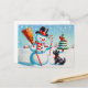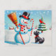Retro Snowman, Cute Dog, Red Cardinal And Trees Postcard