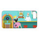 Serve up something special with this Retro Soda Fountain iPhone 6 Case. The minimalist art, cartoon drawing design features the interior of the coolest spot in town. It's a 1950's soda fountain, in all of its kitschy glory! Against the backdrop of an aqua wall, we can see posters advertising the specialties of the house. One poster shows a hamburger and bottle of pop for the bargain price of 15 cents. The other poster shows two scoops of ice cream in a sugar cone for a mere 5 cents. With prices like these, it must be difficult to watch your waistline! A most competent soda jerk is manning the teal counter with yellow accents. The young man with the strong work ethic is holding an ice cream cone with a single scoop of lemon yellow ice cream--although, to be fair, it could be pineapple! The clean-cut lad is wearing a pristine, white shirt with a black, bow tie and a white hat with red accents. On the opposite side of the counter, we see three red and chrome bar stools. Perched on one of the stools is a blonde teenybopper whose mouth is surely watering. It's unclear if her mouth is watering over the ice cream cone that is headed her way or the industrious young man who is serving it. She is wearing a pink poodle skirt and a form fitting black top. Her yellow locks are pulled back in a classic ponytail. Next to this cutie of a customer there is a colorful, classic jukebox, which features brown, wood grain, paneling and colorful neon lights. Better than that, it is sure to feature all of the greatest rock and roll hits of the time! The floor of this mid century modern ice cream parlor is an aqua and teal, checkerboard pattern that is just screaming for someone to try all of the latest dance moves.