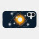 A clean retro cosmic artwork showing stylized stars circling a glowing sun, crafted with bold vintage tones and a textured finish.