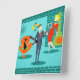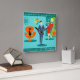 Honey, I'm home! This Retro Space Age Cartoon Couple Wall CLock will have you feeling envious of the cartoon couple on a wall clock! The design features a turquoise background with teal bricks and an olive green, cone fireplace. A sleek, black cat is sitting on a sleek orange chair. There is a teal, starburst wall clock and a two-tier pendant lamp in shades of yellow, blue and black. Front and center, there is a distinguished, martini-swilling businessman in a blue suit and orange tie. To his side, his blonde bombshell of a trophy wife is wearing a red wiggle dress and holding a tray of martinis. Va-va-va-voom!