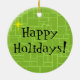 It is said that dogs have owners and cats have staff. The feline on this Customizable Retro Space Age Kitty Christmas Ornament couldn't agree more! The 1960's style, minimalist art design features a sleek, black cat in a mid century modern living room. The sophisticated room prominently features a green, stone wall. The carpet is aqua with teal shadows. The furnishings of the room include a yellow, sputnik light figure, an orange lounge chair with matching footstool and a green television with rabbit ears. The lucky black cat can be seen perched on the footstool in front of the television. Its favorite show is on! On the television screen, we can see a black and white, classic television family solving all of life's problems in a half hour show. The opposite side of this fun holiday ornament has a green, stone pattern and plenty of room for personalizing. This design is purrrfect, if we do say so ourselves.
