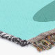 A quality printed throw has its advantages. This is a much finer weave throw than its loopier cousins, and though lighter, it is worth the investment for custom room accessorizing. The back is much prettier than the typical brown, and the fringe on the long sides very vivid, the selvage nicely done. Before photographing, I washed the throw in cold water, delicate, with a thicker woven throw the same size. On tumble dry low, this throw was dry in half the time as the other. This is a very practical quality if you use throws for furniture covers or to wrap up in frequently. The sleekness of the fabric makes it a great layer for accenting or protecting without the feeling of sitting on too much stuff. Perfect for napping or when you feel a light chill coming on. The color printing is beautiful and on this fabric, matched the design and color of my Photoshop image. This is an advantage for blending room fabrics and colors. The fringe on the short sides prints the colors from the design image and therefore varies from the side fringe. I streaked a white fractal line through the plaid pattern to give the illusion of weaving. This printed as crisp as an illusory thread, and put some white in the short side fringe, showing another advantage of print vs loomed- for artistic purposes, line lines, detail, and color integrity can be planned and preserved. My loomed throws have color limitations and more of a needlepoint texture. Print throws reproduce an exact image. The throw felt a little stiff straight out of the package, but this went away in the first delicate wash. Of course I searched the wash water for ink or bleeding and there was none.