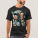 My 11 yo wore adult XL (5’7” 165#). The 8yo is small framed. She wore adult small and tied it in the back. Grandma wore adult large with long sleeve shirt underneath. Tall girl adult medium. Dark haired male adult large. Good quality dark Heather gray, Gildan brand shirt. -it was next up from basic choice and cost about $20 per shirt. Not too thick or thin. Washed and dried well, no major shrinkage. Not see-through. Can wear a bra under it fine. Screen print is just as shown and well done, front and back.