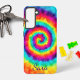 Bright and cheery this retro style spiral rainbow tie dye cell phone case will brighten your day! Personalize it with your desired name or initials.