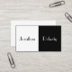 Retro Modern Black and White Business Card. White on the left half and Black on the right half. First name is in black and white is in black. Business contact information is on the back of the card to keep a clean minimalist design