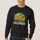 Bring back the groovy 70s with this bold Halloween moon sweatshirt. Featuring a moon with retro stripes in pumpkin orange, with flying bats, it’s the perfect mix of vintage and spooky. Great for Halloween parties, trick-or-treating, or cozy fall nights.