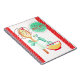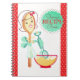 Super cute retro style wooden spoon girl wearing an apron, mixing batter with an egg beater in mint and red on this little personal cookbook or recipe notebook for your favorite baking and cooking recipes.