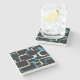Retro Squares Blue Gray White Pattern Black Stone Coaster