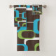 Retro Squares Blue Green White Brown Pattern Bath Towel Set