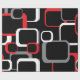 A fun pattern of red, white and gray squares on a black background