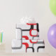 A fun vintage inspired design of retro squares done in gray, red and black on a white background