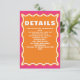 Retro Squiggle Wavy Curve Pink Orange Wedding Details Card