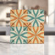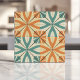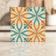 Retro Starburst Design in Teal and Terracotta Ceramic Tile