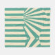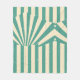This artwork features a striking retro-inspired design with bold, radiating stripes in a teal and cream color palette. The central starburst pattern is accented by angular lines and geometric shapes, creating a sense of movement and energy. The worn, distressed texture adds a vintage feel, reminiscent of old posters or signage. Small stars and dots scattered throughout the design enhance its nostalgic and dynamic aesthetic, making it a visually engaging piece.