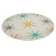 Ignite nostalgic vibes with this playful retro starburst pattern that channels pure mid-century modern magic. Bold atomic stars in varying sizes burst with energy in vibrant teal, sunny yellow, coral orange, cool gray, and soft lime, featuring subtle gradient centers for added depth and movement on a clean off-white background. The iconic 1950s-60s design brings joyful, cosmic flair and timeless optimism.