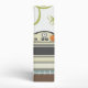 A recipe binder featuring an illustration of a beige retro inspired stove covering portions of spine, front, and back. Stove sitting on a blue floor. Orange pot on stove. Steam from pot swirls onto front of binder. Background of bottom portion of binder is brown. Green flower designs cover binder. Personalize the orange and brown text on front. Matching paper (below) sold separately.