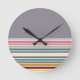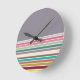 Keep time in style with this bold and modern Retro Stripe Pattern wall clock. Featuring a clean, minimalist layout of colorful retro-inspired stripes—mustard yellow, teal, rose pink, burgundy, and cream—set against a soft gray background, this clock adds a fresh, playful twist to any wall. Whether in the kitchen, living room, office, or entryway, it’s the perfect statement piece for lovers of modern design with a nostalgic touch. Functional, decorative, and effortlessly cool.