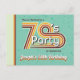 70's Party Invitation Postcard featuring a retro style typography of "70's Party''. Designs include seventies inspired elements of blue, orange, mustard yellow, dark red and brown, stripes, and vintage texture. Includes a template for personal customization.