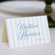 Retro Striped Blue Wedding Name Place Card DIY
