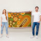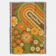 A fun design with funky flowers and a retro stripe background. A throwback design with avocado green, brown and orange shades.