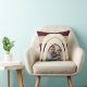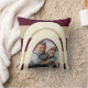 Retro Stripes Arches Burgundy and Beige Photo Throw Pillow with Stripes Pattern on back and Personalization