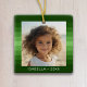 Shades of green stripe pattern with a simple text area for a name and date. Add your favorite selfie or family snapshot. Use a square photo to create this unique and personal holiday ornament. The background includes a retro stripe pattern with a clean, modern update. If you need to adjust the pictures, click on the customize tool to make changes.