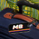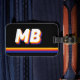 Custom retro stripe monogram luggage tag. Create your own personalized bag travel tag with your initial name in vintage color palette of yellow, red and blue.