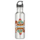 Personalized water bottle with a bunch of delicious looking cupcakes with swirls and cherries and yummy frosting. Illustrated in a classic retro style. Colors include retro green, red, blue and cream.