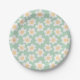 Retro style daisies in bloom on green background paper plates
