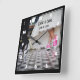 A cute picture of a bride and grooms legs and feet. Wearing their fancy wedding attire, with casual running shoes. He has black sneakers and hers are vibrant bubblegum pink! The contrast of the black and white theme with the pink shoes really makes the image pop! The happy couple is standing in a diner with black and white checkered floors. Very retro fifties diner style theme. personalize with your own name and wedding date.
