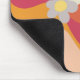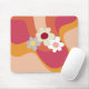 Abstract colorful retro style design with blooming flowers and yellow, orange and pink waves decoration on pastel pink background