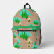 A fun cute mid-century style retro aesthetic great outdoors camping illustration woods forest tent life road trip family vacation kitschy vintage digital illustrated pattern design unique school bag backpack. Get a cute camping backpack today.