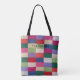 This colorful patchwork tote bag has a fun retro appearance. The knitted patchwork image on the bag is taken from a photograph of an original hand knitted pattern. The black andwhite patchwork has been photographed to show it looking natural and "pre loved" you may even see a few pet hairs! and there will be bobbly bits, stray threads and creases, this all makes up the natural look of a much loved traditional piece of patchwork knitting. The shabby chic look gives it a pre-loved feel.