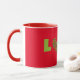My original artwork on this mug features my created confetti pattern heart acting as the letter 'O' in the word LOVE. The retro appearance of the letters is designed in a complementary bright green color hue to the heart and gives this one-of-a-kind mug an artsy flair. The inside and handle of this mug is red; however you may change the color if desired.