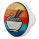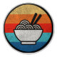 Retro style ramen illustration with noodles and chopsticks on a colorful retro style sunset background in yellow, orange, red, turquoise and blue colors