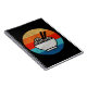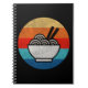 Retro style ramen illustration with noodles and chopsticks on a colorful retro style sunset background in yellow, orange, red, turquoise and blue colors