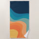 Retro style waves geometrical pattern illustration with yellow, orange, blue, navy blue and turquoise stripes decoration
