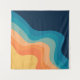 Retro style waves geometrical pattern illustration with yellow, orange, blue, navy blue and turquoise stripes decoration