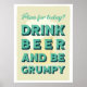 Add some humor to your space with our Plan for Today? Drink Beer and Be Grumpy vintage-style poster! Featuring bold, retro fonts and a tongue-in-cheek message, this playful wall art is perfect for beer lovers and those who appreciate a touch of sarcasm. Ideal for man caves, home bars, or as a unique gift. Cheers to keeping it real.