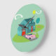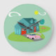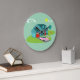 This Retro Suburban House Acrylic Wall Clock pattern features a typical American home in a typical American neighborhood, circa 1950. A teal home with a peacock blue roof, and turquoise windows are perfectly offset by a vibrant red front door and garage door. A classic pink, 1950’s finned convertible car is parked on the picturesque driveway. Kitschy, plastic, pink flamingos look right at home on the boomerang shape of freshly mowed green grass resting on a jade background. The manicured lawn is landscaped with whimsical trees. Kidney bean shaped clouds and a yellow sunburst of a sun let you know it’s just another glorious day in mid century modern suburbia.