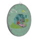 This Retro Suburban House Dart Board pattern features a typical American home in a typical American neighborhood, circa 1950. A teal home with a peacock blue roof, and turquoise windows are perfectly offset by a vibrant red front door and garage door. A classic pink, 1950’s finned convertible car is parked on the picturesque driveway. Kitschy, plastic, pink flamingos look right at home on the boomerang shape of freshly mowed green grass resting on a jade background. The manicured lawn is landscaped with whimsical trees. Kidney bean shaped clouds and a yellow sunburst of a sun let you know it’s just another glorious day in mid century modern suburbia.