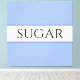 This fun, nostalgic design features text inside a wide white center stripe highlighted with black pinstripes against light powder blue background stripes. The SUGAR text can be personalized.