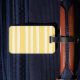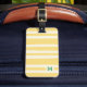 A retro chic custom monogram luggage tag with bright butter yellow stripes that will make you look trendy and stylish on your summer holiday.